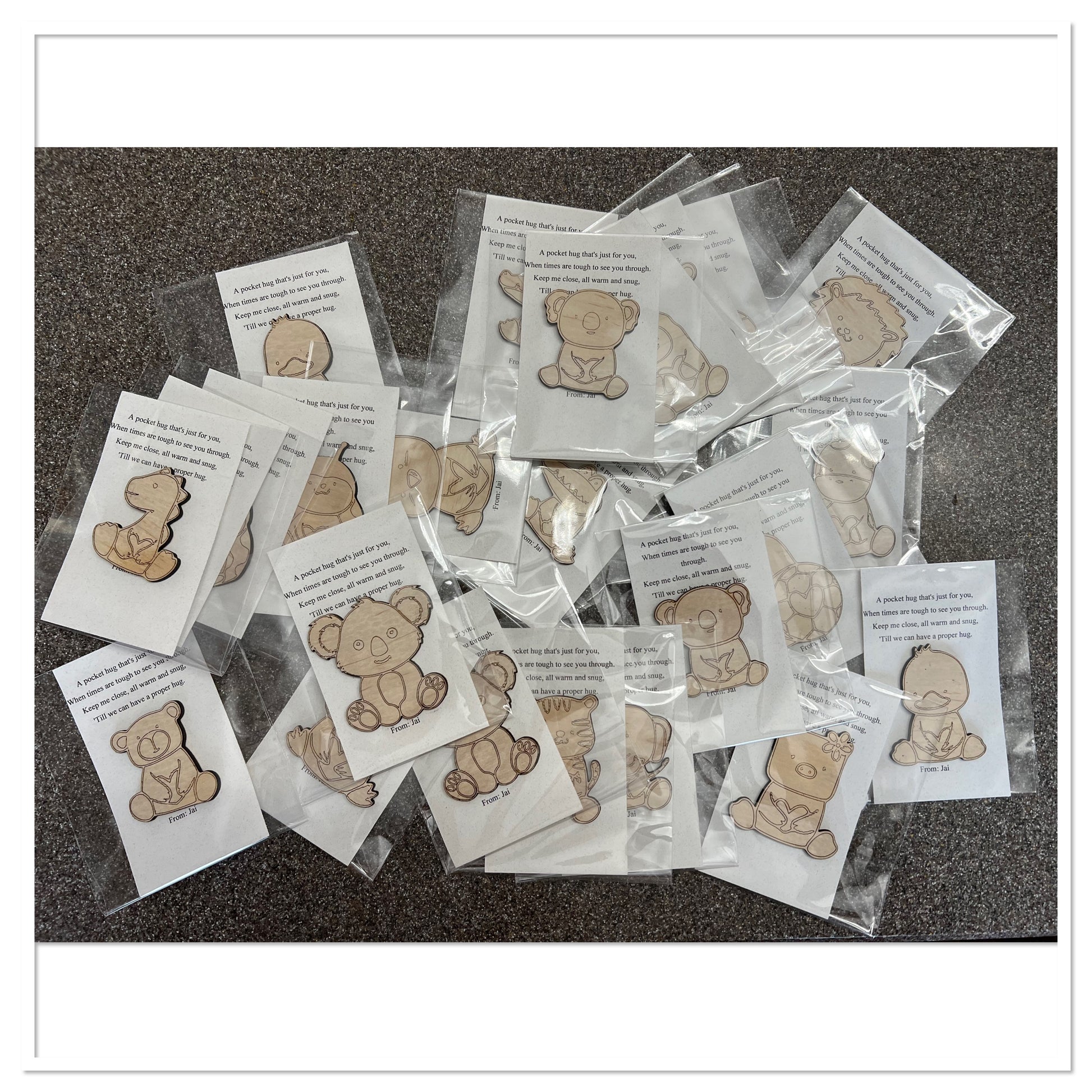 Add an unexpected adventure to your day with Laser Cut Wood Pocket Hugs! Our innovative pocket hugs are cut from durable wood with precision lasers, providing a unique way to keep special memories close. Embrace spontaneity and explore what's around the corner!